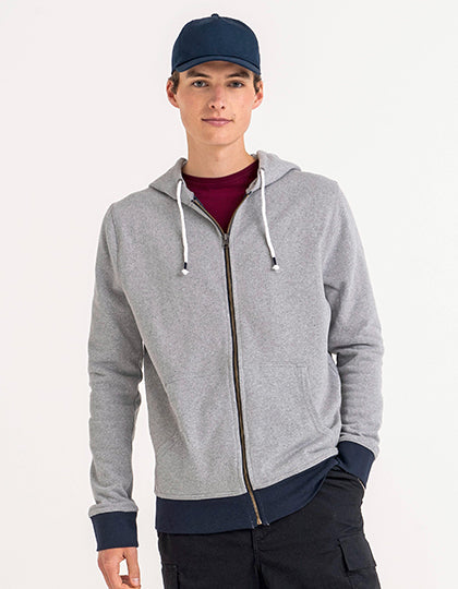 Recycelte Baumwolle aus Fabrikausschuss/recycelter Polyester | abgesetzter Bund und Saum | Gepeachte Oberfläche | Stoff innen gebürstet | Metall-Reißverschluss | Nur mit Größenetikett | Alle Etiketten bestehen aus recyceltem Polyester | Kontrastierende, runde Kordelzüge | Gerippte Ärmelabschlüsse und Saum | Nackenband | Eingesetzte Ärmel | Slim Fit und