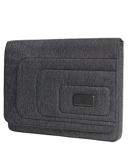 Polyester 900d | Gepolsterte, wertige Hülle mit aufwändig gesteppter Front und Kunststoffemblem für Ihr Logo | Geeignet für Notebook und DIN A4-Notizbücher | Auf der Front flaches Einsteckfach mit Stiftschlaufe | Rückseitig großes Reißverschluss-Fach geeignet für DIN A4 Unterlagen | Magnet-Verschluss | Lieferung ohne Inhalt/Deko