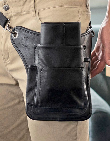1 großes Hauptfach zum Unterbringen von EC- und Kreditkartenlesegeräten, mobilen Bestell- und Kassensystemen oder anderen Utensilien | 1 aufgesetzte Tasche für Notizblöcke | 1 aufgesetztes Einsteckfach für Kugelschreiber und Stifte | 1 Schlaufe zum Befestigen von Kugelschreibern oder Kassenschlüsselketten | Integriertes Gürtelband (längenverstellbar)