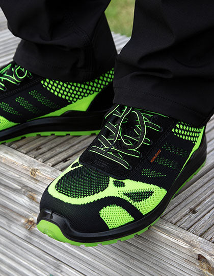 Obermaterial: Polyester Netzfutter „Flyknit“ mit Rand aus Wildleder; Sohle: PU mit zweifach Verstärkung; Zehenschutz: Stahlkappe | Technische Information: CE EN 20345:2011 SB SRA | Atmungsaktiv und strapazierfähig | Abfederung im Fersenbereich | SRA rutschhemmend | Polsterung unter der Schnürung und am Schaft | Ersatzeinlegesohle | Zehenkappe aus Stahl | Ölbeständig | Fersenschlaufe | Bei diesem Artikel handelt es sich um persönliche Schutzausrüstung (PSA). Gemäß EU-Verordnung 2016/425 über persönliche Schutzausrüstungen ist eine EU-Konformitätserklärung durch den Hersteller obligatorisch. Diese stellen wir Ihnen auf Anfrage gerne zur Verfügung.